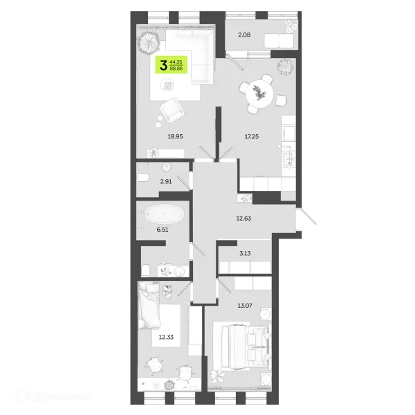3 комн. квартира в Уфе в ипотеку от 91 503 руб/месяц