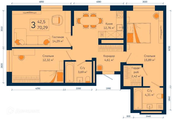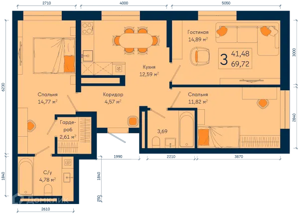 3 комн. квартира в Уфе в ипотеку от 101 644 руб/месяц