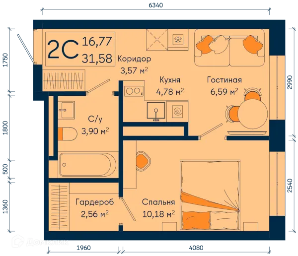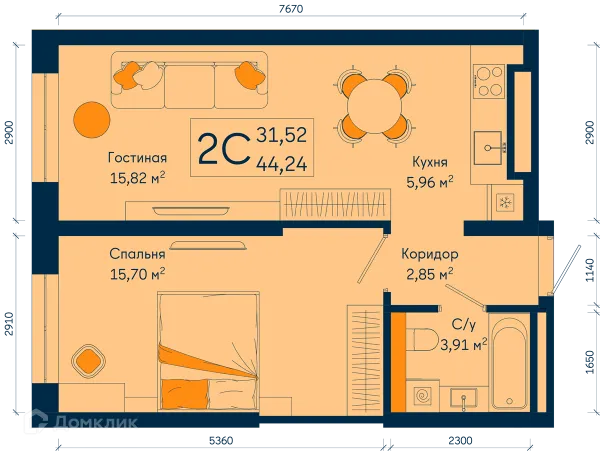 2 комн. квартира в Уфе в ипотеку от 77 303 руб/месяц