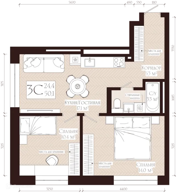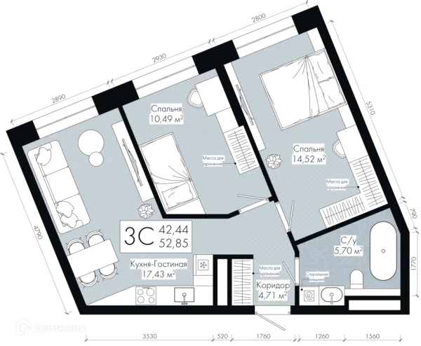 3 комн. квартира в Уфе в ипотеку от 110 843 руб/месяц