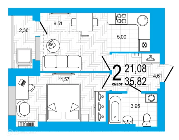 2 комн. квартира в Уфе в ипотеку от 37 917 руб/месяц