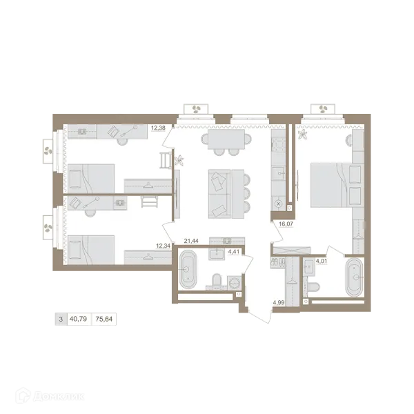 3 комн. квартира в Уфе в ипотеку от 62 638 руб/месяц