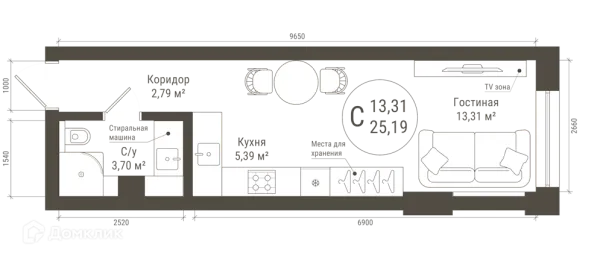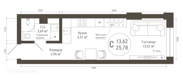 Студия квартира в Уфе в ипотеку от 39 613 руб/месяц