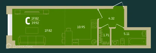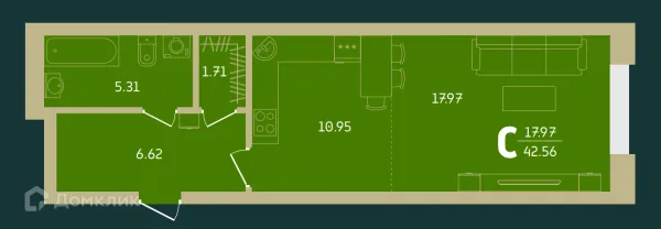 Студия квартира в Уфе в ипотеку от 40 043 руб/месяц
