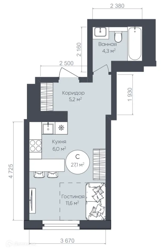 Студия квартира в Уфе в ипотеку от 28 288 руб/месяц